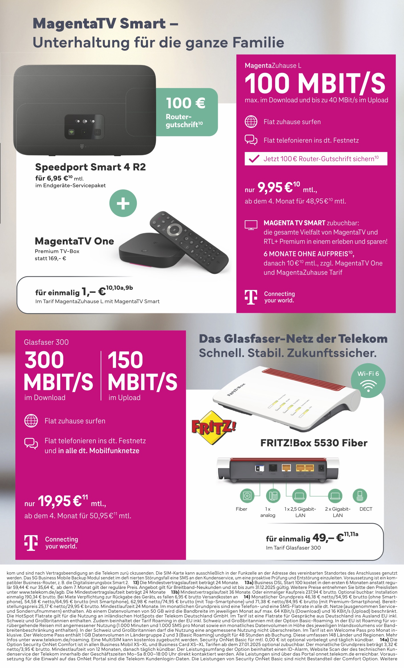 Internet, Festnetz, Handyvertrag, Datenkarten, SmartHome, MagentaTV und viel mehr.